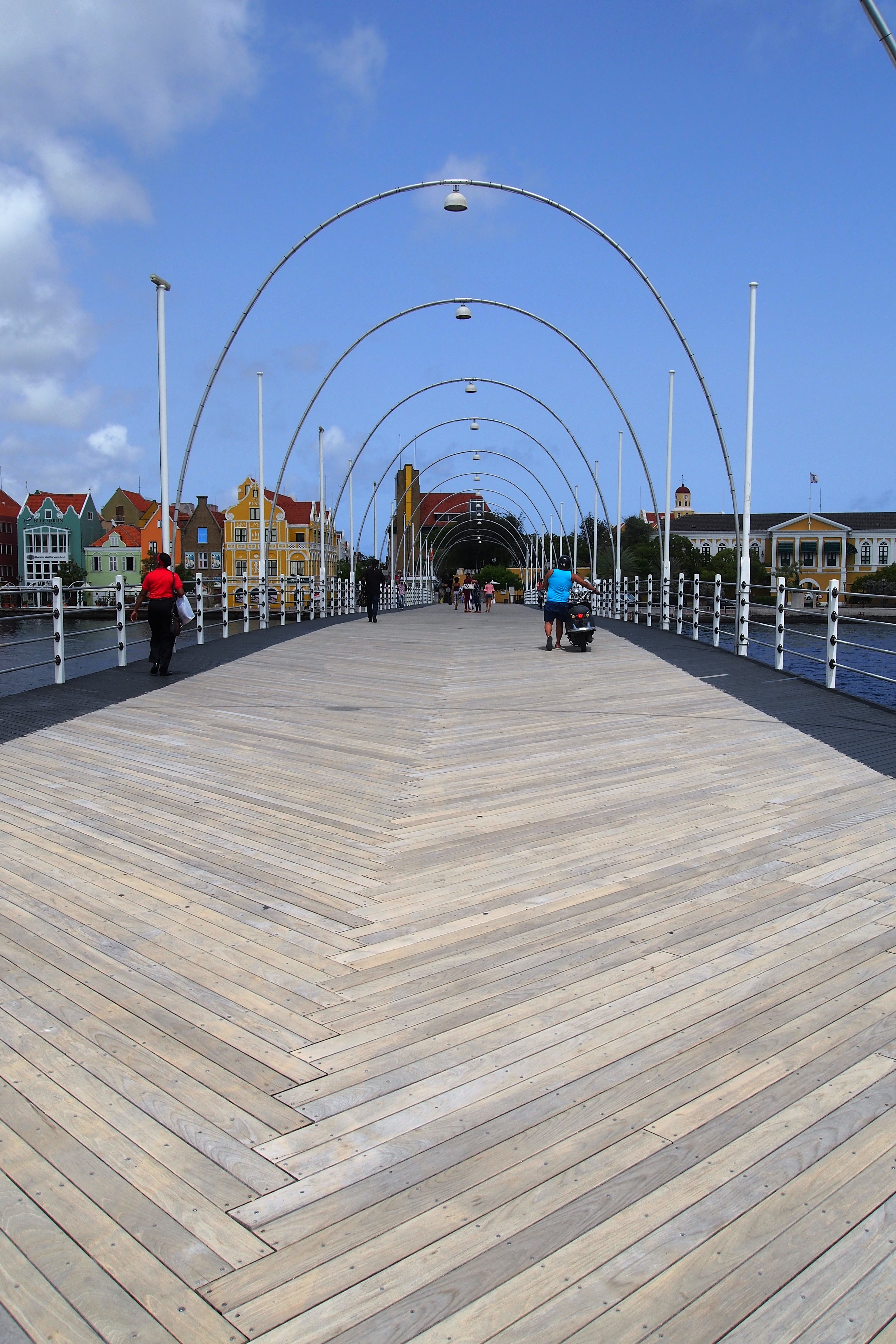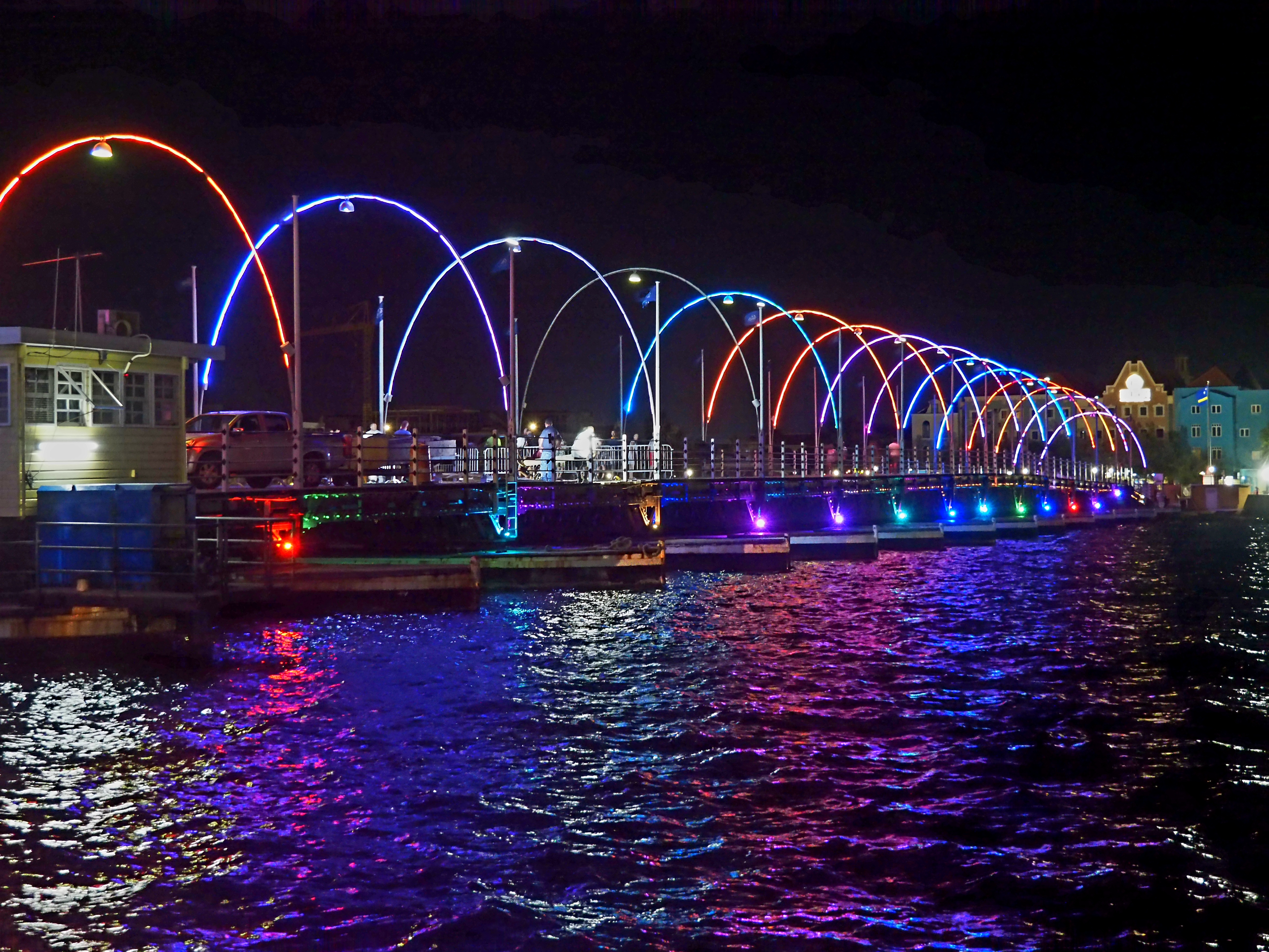 De Koningin Emmabrug is een pontonbrug (drijvende rug) over de Sint Anna Baai. De brug staat ook bekend als de ‘swinging old lady’, omdat ze open en dicht zwaait om schepen in en uit de natuurlijke haven te laten. Een waar spektakel! Als je geluk hebt, kun je een grote cruiseschip of containerschip de haven binnen zien varen. Een bel geeft de naderende opening van de brug aan, zodat voetgangers tijd hebben om de brug te verlaten. Spoedig daarna zullen de toegangspoorten sluiten. Je kunt er in feite voor kiezen om op de brug te blijven als deze open gaat, maar kies verstandig want je kunt de brug alleen verlaten als deze weer dicht gaat.