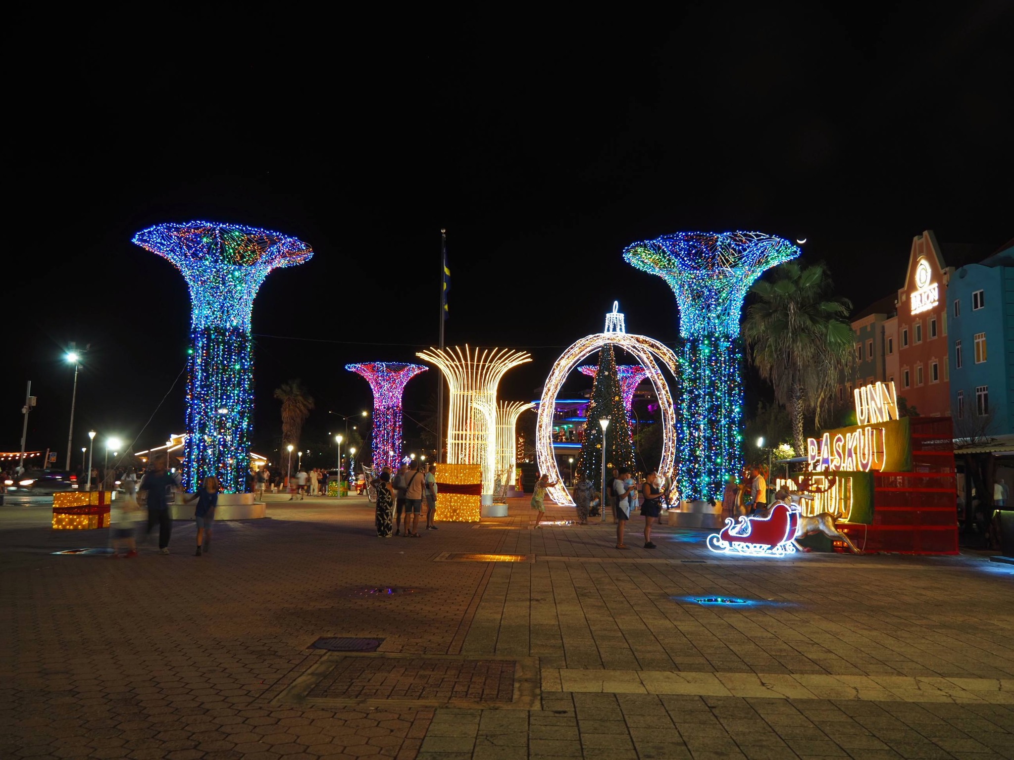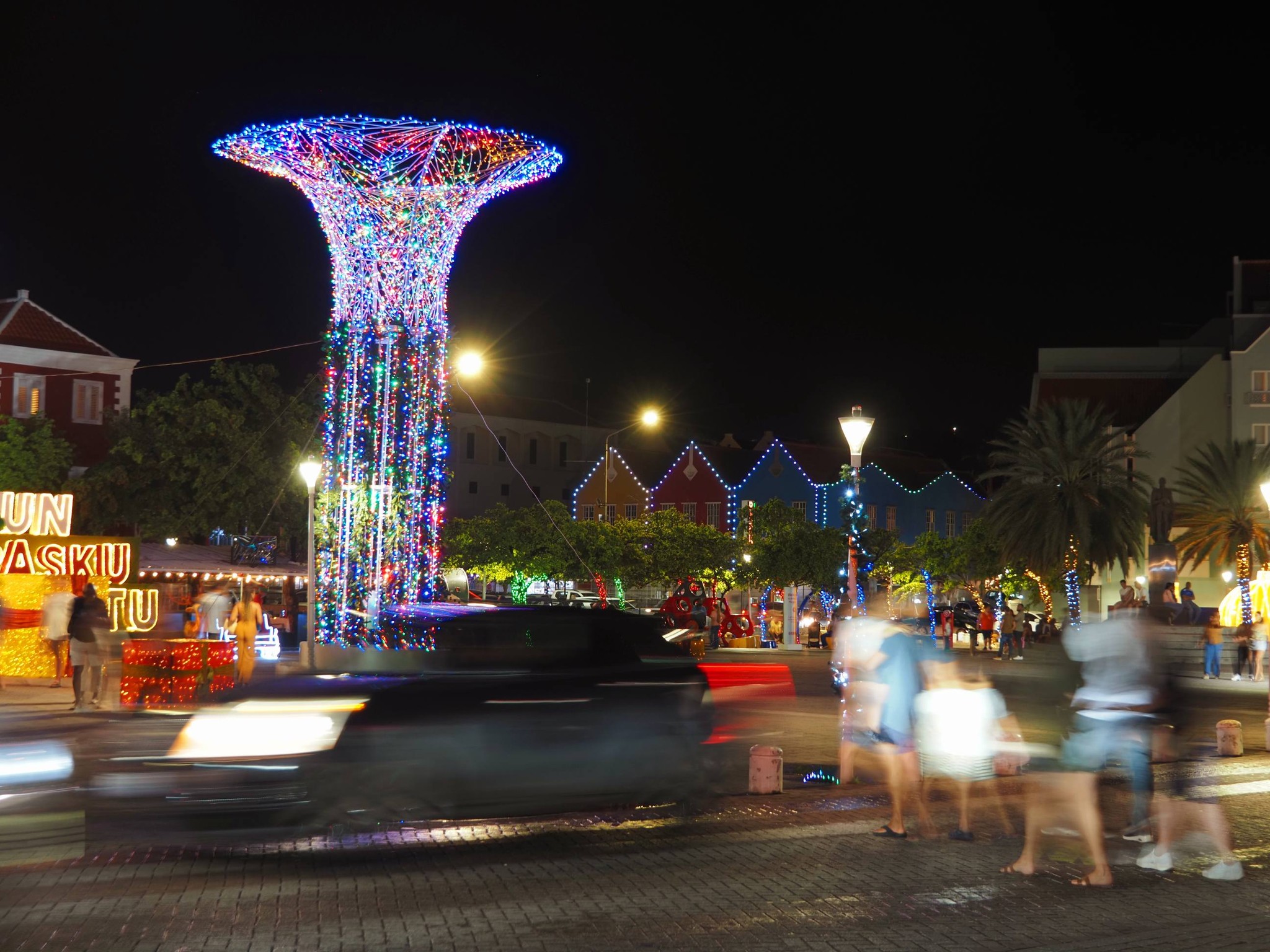 De straten, huizen en winkels worden prachtig versierd met kleurrijke lichtjes, kerstbomen en andere feestelijke ornamenten. Zowel in de hoofdstad Willemstad als in andere delen van het eiland zie je vaak kleurrijke versieringen die een feestelijke sfeer creëren.
